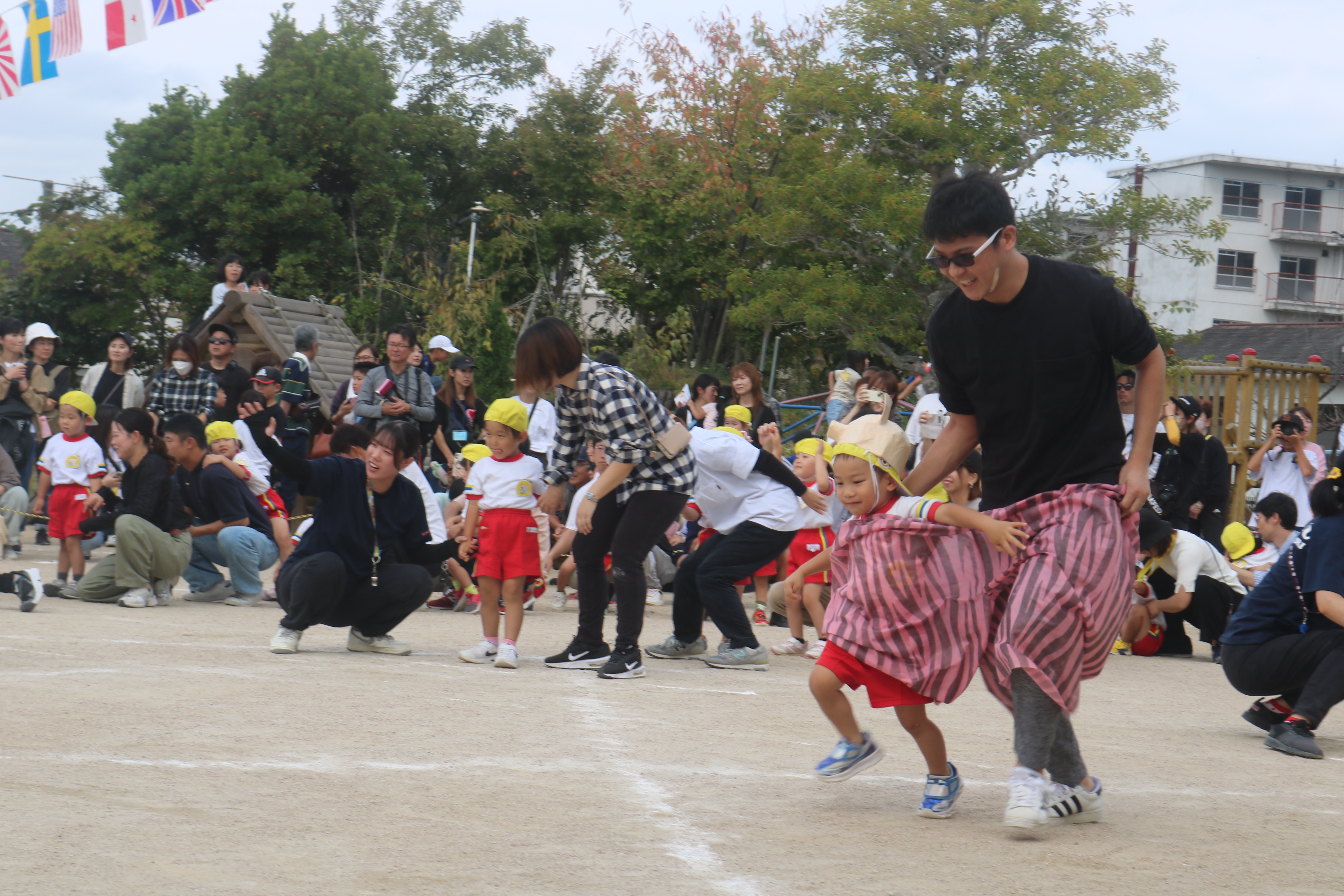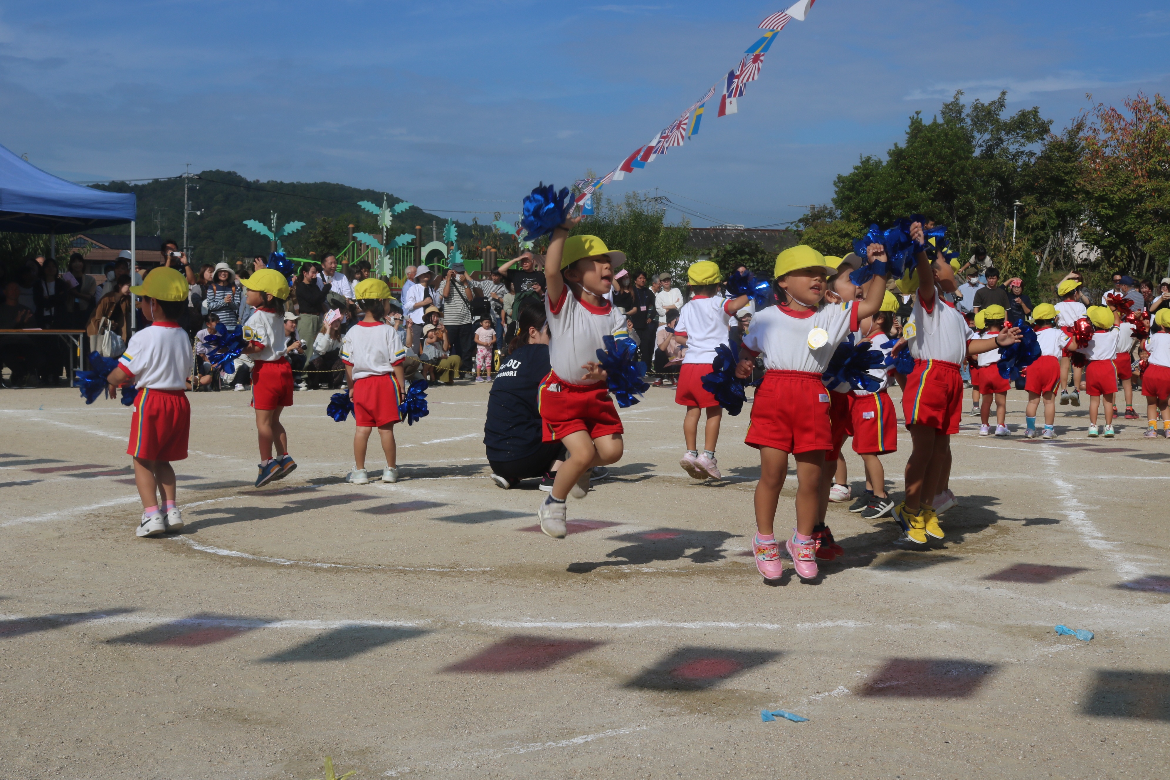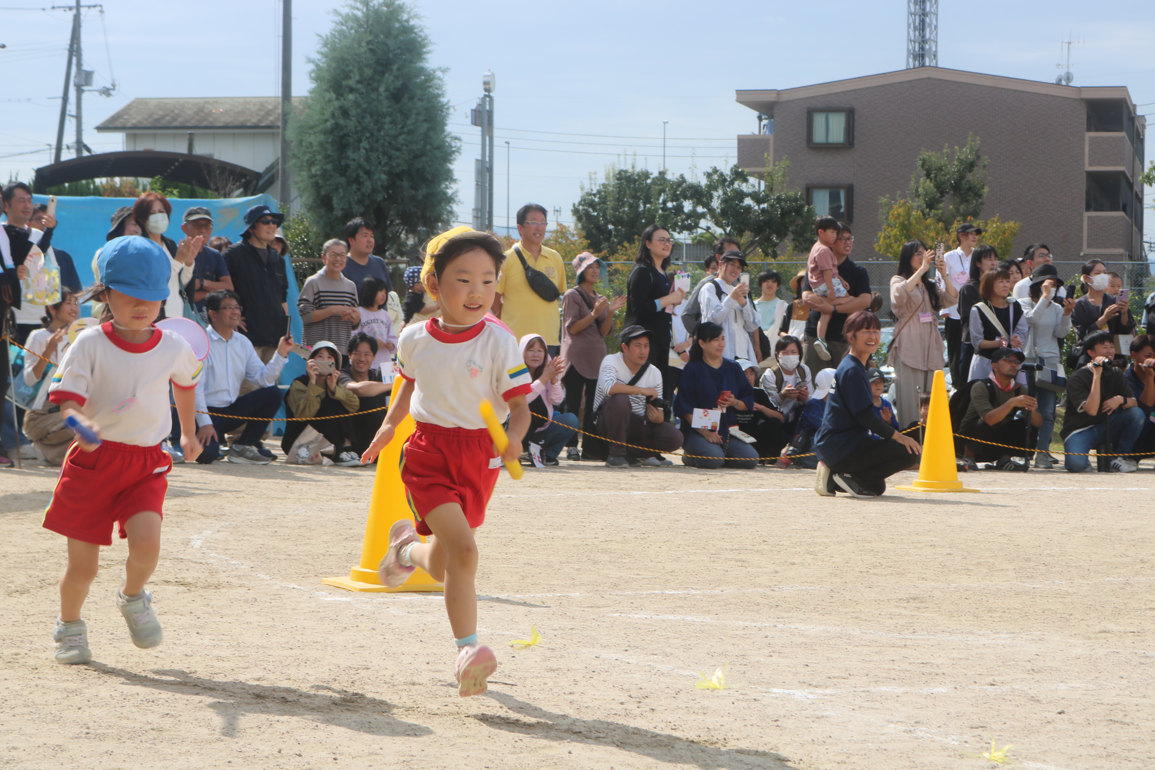 R7 運動会 楽しかったね! 10月18日(土)は、こばとの森の運動会でした。 天候が心配されましたが、青空の元、たくさんの方の応援の中で、子どもたちは元気いっぱい運動会を楽しむ事ができました。 年長 鼓笛隊・台風の目・グループ対抗リレー 年少 ダンス 親子ででかパンリレー 年中 パラバルーン 年中と年長合同で 運んで積んで競争 その他にも、いろいろな競技を行いました!